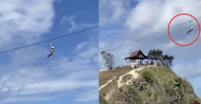 (雅加达16日讯)男童玩高空滑索时竟被卡在半途,唯有靠自己摇晃身子蹬到低处,视频曝光引起非议!