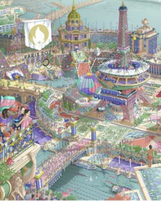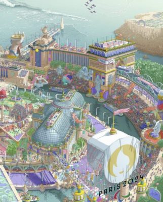 平等是今届奥运倡导的标志精神,所以主题海报在设计上也融合了残奥会和奥运会。他描绘了一个面向世界开放的城市,在这个城市中,熟悉的地方、著名景点和标志建筑被重新排列和重新诠释,连接了1900年奥运会、1924年奥运会以及100年后的2024年奥运会的巴黎。海报中有太多小细节,也讲述了无数的小故事。