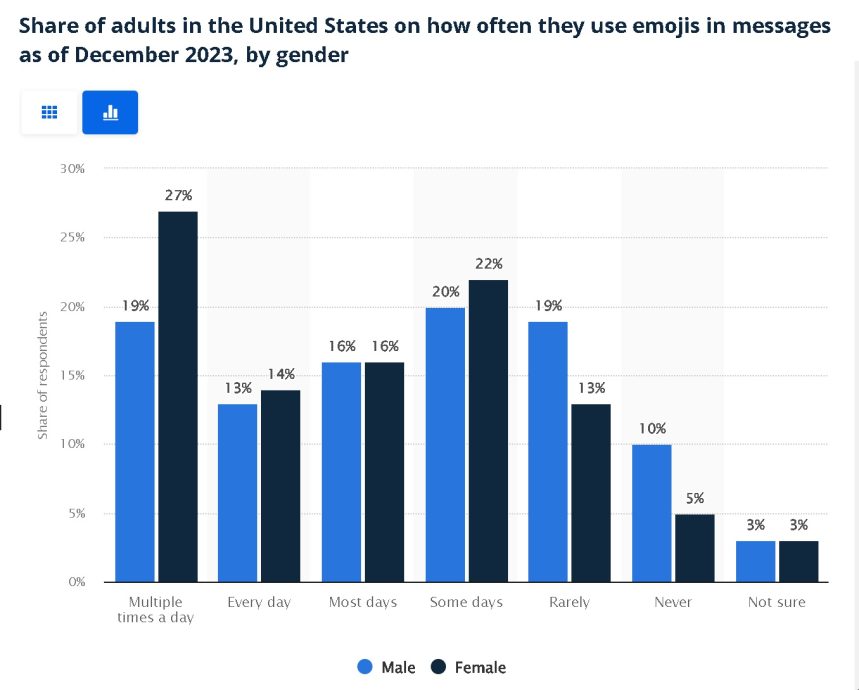从宏观的角度来看,表情符号必然会经历淘汰的阶段。每年都会有新的表情符号涌现,而新生代有不同的社交习惯和Emoji偏好,他们更喜欢使用自制的恶搞表情包、GIF贴图和AI贴图来表达自我。因此,一些传统的表情符号也渐渐被忽略和少用了。