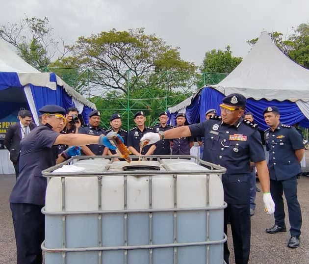 这项销毁证物仪式今日9时,在雪州刑事调查主任巴哈鲁丁高级助理总监以及士拉央推事蔡源富见证下,于鹅唛警区总部操场进行;这批销毁的证物价值约131万令吉。