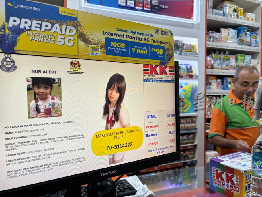 (新山22日讯)6岁女童廖家慧失踪2天,KK便利店也加入寻人大军,在全国分店发布寻人启事!