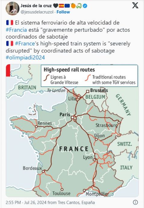奥运开幕前不到10小时 法国高铁遭恶意攻击纵火