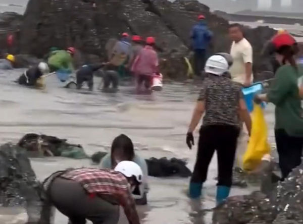 《环球时报》报道,画面中,海滩聚集不少人在赶海,甚至有人秀出自己3桶满满的生蚝“战绩”。施太太表示,“风大浪大鱼货越多,这是有危险的,本地人知道如何规避,建议外地人最好不要去参与。”