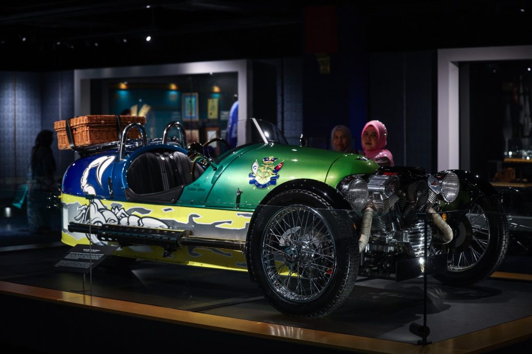 此外,英国制造的摩根三轮车也在展览中备受关注。这辆独特的绿色香蕉顶、无门、无顶汽车被放置在展览厅中央,而展览厅内还陈列着苏丹依布拉欣与国家元首后拉惹查丽苏菲雅的其他私人藏品。