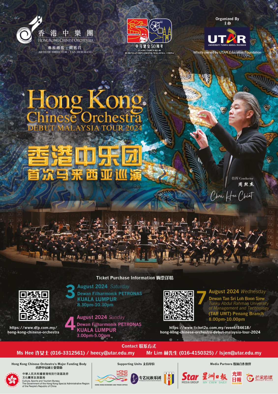 有意购票者可浏览 https://www.dfp.com.my/hong-kong-chinese-orchestra(马来西亚国油管弦乐厅场次)或https://www.ticket2u.com.my/event/34618/hong-kong-chinese-orchestra-debut-malaysia-tour-2024(槟城场次)网站获取购票详情,有任何疑问者可联络许女士016-331 2561或林先生016-415 0325。