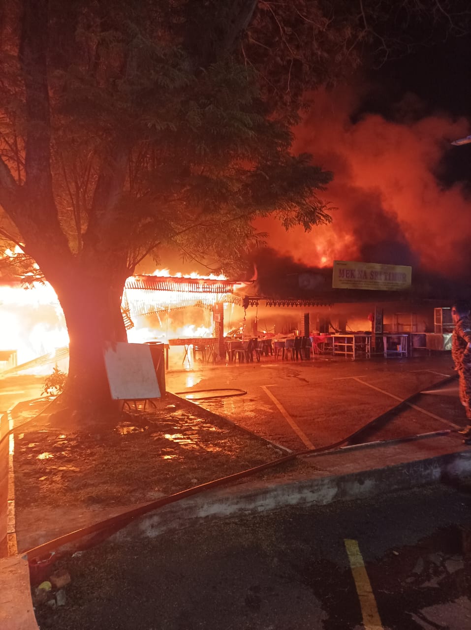 这起火灾于今天清晨5时49分,发生在上述花园AU 5路的小食中心。