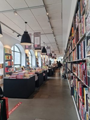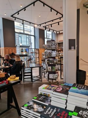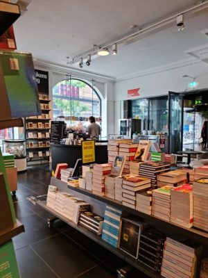 Arnold Busck这家3层楼的书店,是我刚来丹麦时第一家逛的书店。这间书店在1896年由Arnold Busck创办,全盛时期曾在丹麦全国各地有29家分行,可惜敌不过时代的命运,因疫情持续多年导致营业额下滑,最终在2020年正式宣布破产,旗下14间分行由大型连锁书店兼文具店“书&点子”(Bog & Ide)收购,而位于哥本哈根市中心的这家总行,则由丹麦最大的出版社之一的政治出版社(JP / Politikens Forlag)接管,保留了书店原名,让这家从1901年就存在于哥本哈根闹市街头的书店得以在原址持续服务读者;后来更和咖啡馆合作,把店内一个角落租给咖啡馆,让买书的人逛书店时也有个可以歇脚的所在。