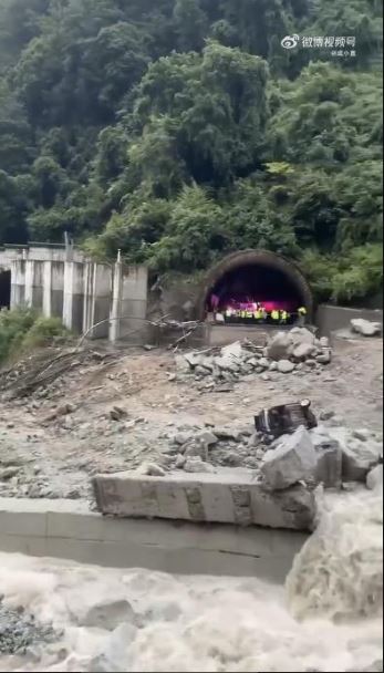 新华社早前报道,四川省雅康高速公路康定至泸定段日地1号隧道至2号隧道处,周六六凌晨3时30分左右因突遇山洪泥石流隧间桥垮塌,有车辆掉坠。