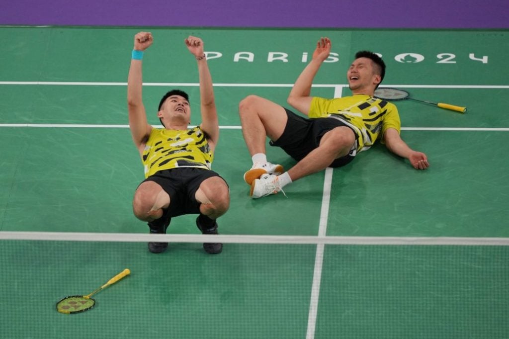 早前铜牌战,“谢苏组合”谢定峰与苏伟译以16比21、22比20、21比19逆转丹麦组合阿斯特鲁普与拉斯姆申,为大马代表团赢得巴黎奥运的第一枚奖牌,个人连续2届奥运夺铜。