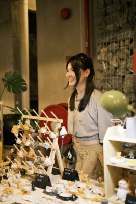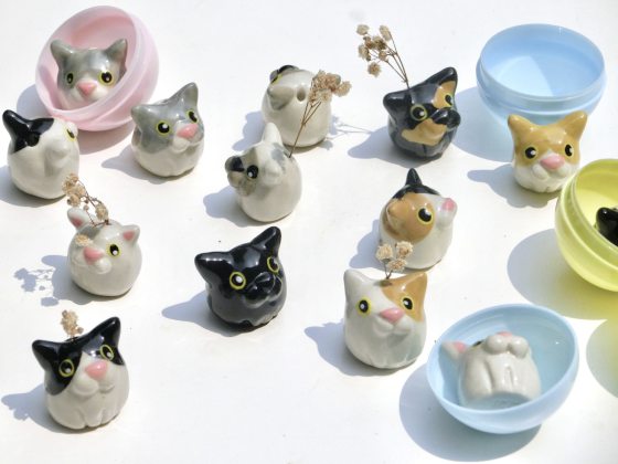 在槟城Hin Bus的周末市集偶遇cattery.studio,如小猫般甜美可爱的摊主庄贵萱静坐里头,摊位上的猫陶器,小巧可爱,虽是陶制物,但一双如玻璃球般大的眼睛炯炯有神,像星星般的向路人眨呀眨的,仔细看看主人,人如其物。