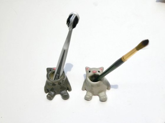 具备纯美术功底让她在陶上画猫时下笔如有神, “我不用特地去找比例就可以直接上手,如眼睛的位置,下笔时就知道大小与之间的比例,画出来不会歪斜或大小不一。” 每一只手捏的作品,虽造型相似,细看之下都不重样,这除了纯手作无法做出一模一样的作品,更大的因素是不喜欢重复做同样的东西,因而,每一只皆独一无二,如有雷同,纯属巧合。