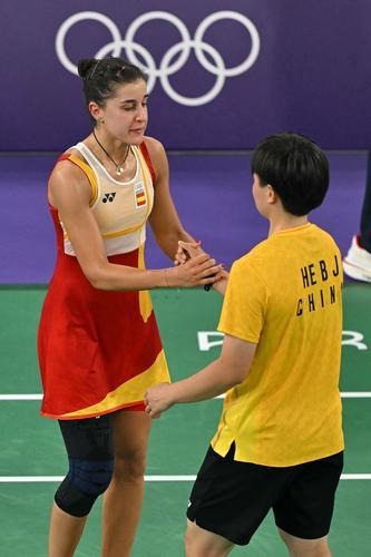 (巴黎7日综合电)在巴黎奥运女单半决赛中伤退的西班牙名将马琳,向中国选手何冰娇在领奖台上手举西班牙徽章的行为,表达感谢。