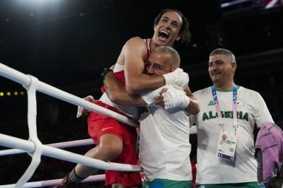 伊曼凯力芙在观众喊叫助威下,以5比0完胜杨柳,为她拿下奥运首枚金牌。