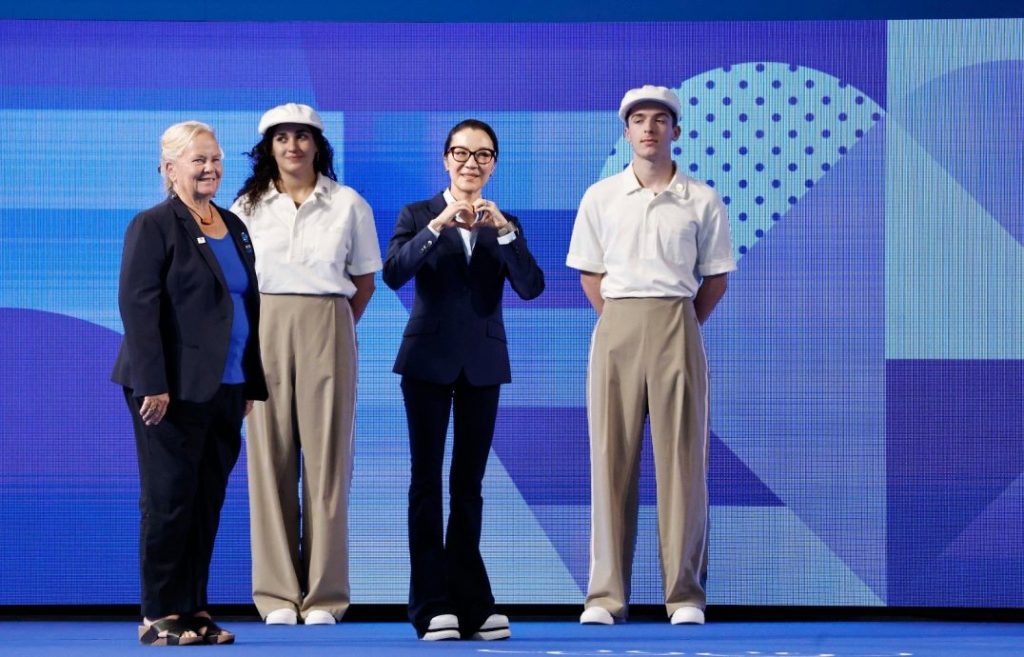 (巴黎10日综合电)大马国际影后丹斯里杨紫琼出席巴黎奥运会跳水赛担任颁奖嘉宾,令两名领奖的中国跳水选手陈艺文和昌雅妮都露出可爱的举动,瞬间引爆网络。
