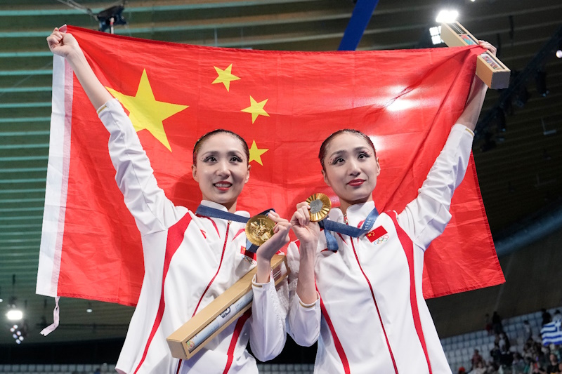 从集体到双人,中国队包揽巴黎奥运会韵律泳项目两金,两次都是历史性突破。