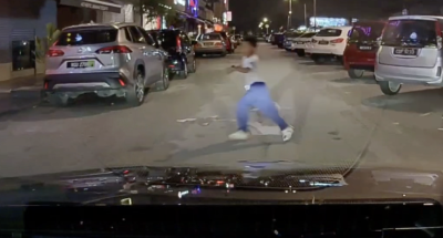 网民Evelyn在社媒贴出一段行车纪录仪画面,纪录了日前发生的惊心动魄一刻。事发时是 7日晚上9时54分,当时她与朋友在灵市SS2商业区驾车。