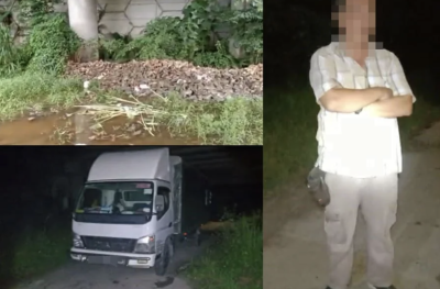 网民“ajoybasmini007”在TikTok上传视频,指他上周五(9日)晚间11时35分,在士毛月甘榜双溪毛糯一条河边,发现一行人将榴梿壳垃圾倒入河内。