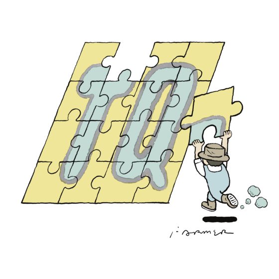 年幼时曾在朋友家看过一幅5000片的大拼图。记忆里拼图以欧洲乡村为背景,画面里前前后后地聚集了许多人像。因常拜访,几乎见证了他们一家当时从零到最终裱框高挂客厅墙上的拼图过程。每一次去总会看到家中成员半躺半坐地伏在客厅地面,拿着一片片的纸块搔头摸耳或反复试探。想起这些是因为翻出买了多年搁置的500片装中岛洁作品的拼图,想或许就趁现在拼起来做个了断。老画家中岛洁已81岁,仍日复一日持续画着巨幅的画。从孩童小狗的童年至和服女子形象的作品,题材怀旧但至今看还是好精彩不落俗套。倒是“拼图”本身在这时代看来,应该已算是慢慢走向历史(或其实仍深受欢迎?)?花了几天咬牙充满恨意地拼完后,忍不住去搜寻拼图的发明家。资料说最早的拼图在1760年左右出现,不确定是法国的迪马或英国的约翰·斯皮尔斯伯里,或许他们都是其中的推手。托他们的福,让自己重新体验这种心累眼又花的活动,真是谢谢。