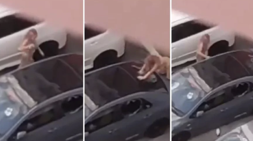 社交平台X用户“@Update11111”上传这段长达10秒的视频,可见女子用布包住右手,爬上轿车的车后盖,砸碎车子的后方大镜。