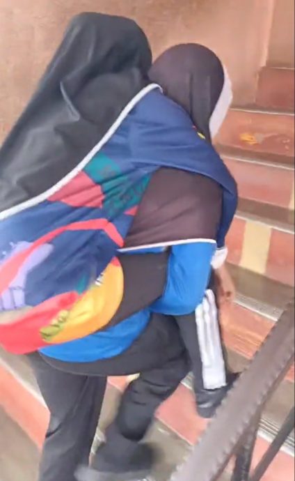 小学男老师法兹里在其TikTok账号“@fazleismail”视频分享,学校的2名女同学以接力的方式背着行动不便的同学爬楼梯上课,展现了同学之间的互助精神。