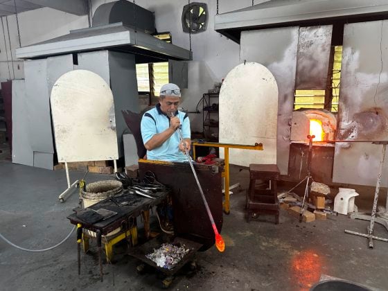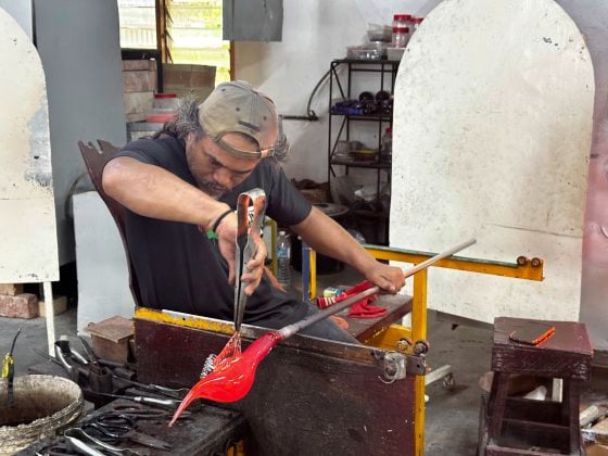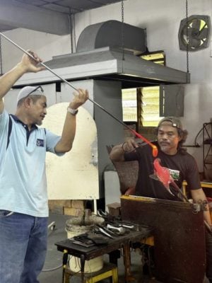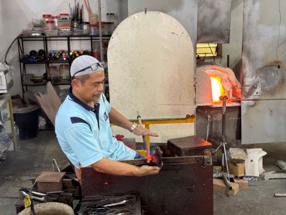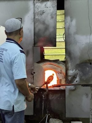 玻璃吹制工艺在文艺复兴时传入欧洲,在本地亦盛行一时,但由于制作成本高昂、过程得忍受高温,目前全马只剩浮罗交怡的卡玛鲁(Kamarul Faizy Roslan),仍在制作水晶玻璃路上奋斗着……