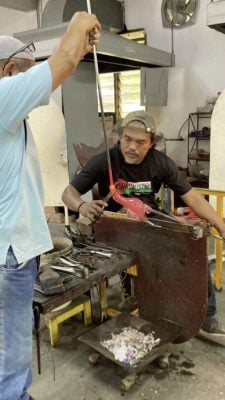 环顾小小的工作室,只有卡玛鲁和友人一来一往在熔炉前努力。他坦言本地年轻人职业选择多,在网络担任内容创作者、电召车司机、网卖等,都比制作手工艺品来得轻松。他进一步解释,对于新手而言,必须花很长的时间掌握形塑水晶玻璃的节奏。此外,为了确保玻璃处于液体的状态,熔炉必须24小时保持高温,要开设一家水晶玻璃工作室的开销非常大。