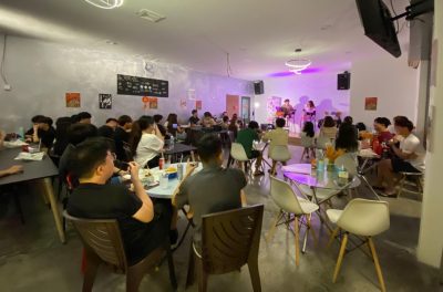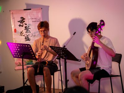 (金宝讯)霹雳金宝拉曼大学(优大)华乐团举办的“京繁花盛”2024年华乐演奏会,日前举办了一场附属活动,是音乐与美食相融的音乐交流会,在一家烧烤串串店进行,别开生面,让参与者享用美食的同时,又可以大饱眼福,观赏表演。