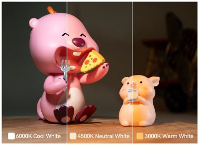 这款0.5W的迷你LED灯内置了15颗LED灯珠,亮度为250lm(流明),显色指数高达CRI 95+。它一共有3000K、4500K和6000K三种色温供选。其实,它的亮度只是比手机LED灯亮一些,但用来自拍、拍摄人像特写或小型产品已经足够。
