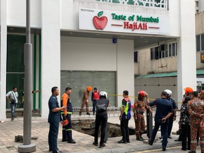 (吉隆坡23日讯)吉隆坡市中心今日发生一起骇人的地陷案件,一名48岁印度女游客走在印度清真寺路段时,大路突然塌陷,导致她跌入至少8公尺深的地洞里,目前生死不明。