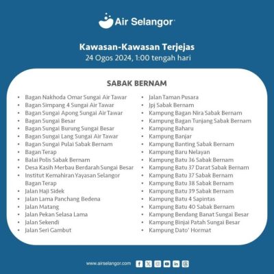 文告指出,受影响的水供用户,可透过官方网站https://waterupdates.airselangor.com掌握最新消息。