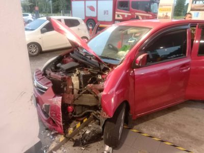 所幸的是,率先抵达现场的消拯员发现自行车祸并非特严重事故,根据现场消息指是57岁巫裔女司机疑误踩油门,车辆爆冲撞上油站建筑墙壁。
