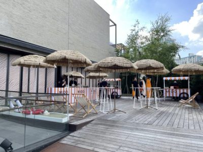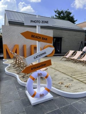 为Ocean Star海洋之星腕表而设的推介礼,一切与海有关,沙滩躺椅、沙滩上的草棚吧台、冲浪板,连带沙子一同还原了休闲的度假风。金秀贤身穿一袭蓝色的西装亮相,就在下午灼热的阳光及闷热的天气里,全程面带笑容的让媒体拍摄。几乎是让站在各个方位的媒体都能拍到,不只是微笑,就连比心的手势也换了无数个,更不忘展示别在手腕上的Ocean Star 39表款,绝对是称职的品牌代言人。