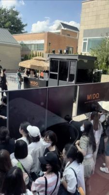 8月份的韩国首尔正值夏天,天气与马来西亚一样炎热,感觉上可能要比大马再闷热一点。Mido为全新Ocean Star海洋之星腕表举行的推介礼,挑在一个非公开的场合L’espace Etnah,只限受邀者方能入场。接送媒体的巴士到达现场时卡在狭窄的小路,收到风声的粉丝早已聚集在大门外。隔着巴士玻璃窗都可以听到粉丝们的尖叫声,只因他们透过大铁门的间隙见到了在户外拍摄的金秀贤。