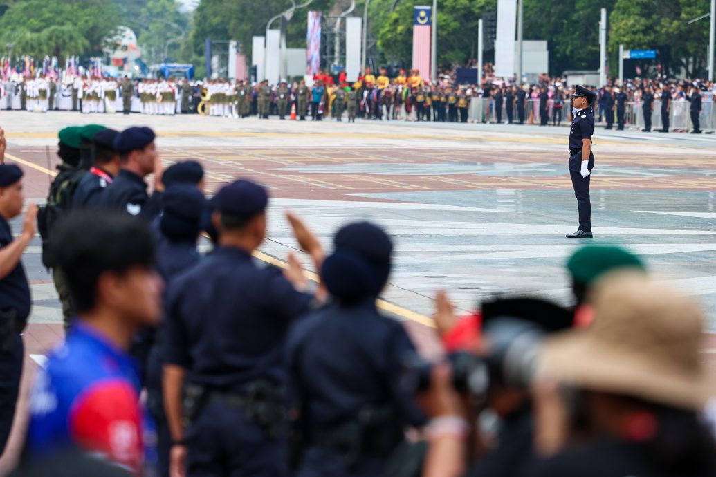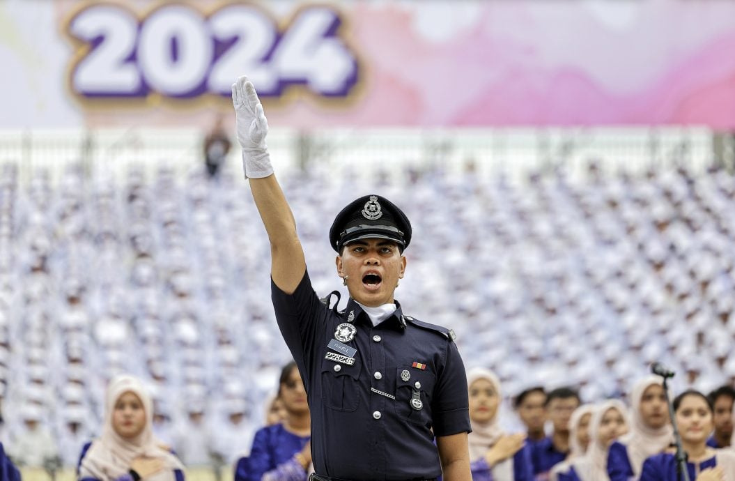 (吉隆坡31日讯)在今年5月发生的乌鲁地南警局恐袭事件中,英勇抗匪歼灭歹徒的普通警员莫哈末凯鲁,精神气爽地现身今年国庆日庆典并带领宣读《国家原则》,在现场高喊了7次“默迪卡”!