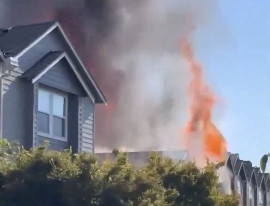 当地媒体发布的影像显示,至少一幢连栋房屋被大火吞噬,现场冒出浓浓黑烟。