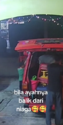 母亲在其TikTok账号 @aslindadikinn 上传这段41秒的视频,显示其丈夫晚上在外摆摊结束回家,才刚将货车泊好,孩子们就一窝蜂地走了出来。