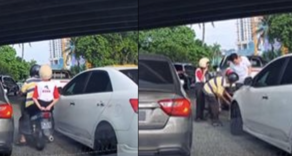 Muka Uncle tu dah cuak masa angkat motor tapi driver kereta putih tu baik dan minta teruskan hantar cucu ke sekolah
