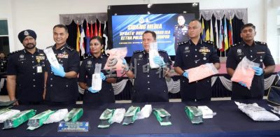 “两项行动中缉获的毒品总价值160万令吉,可供4万名吸毒者一次性吸食;另外,警方还扣查嫌犯所属的现金、金饰及2辆轿车,价值约6万6900令吉。”