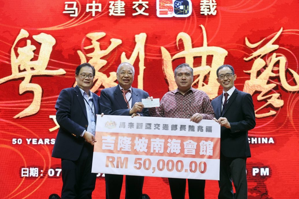 也是马来西亚南海会馆荣誉会长的陆兆福指出,曾在去年向南海会馆提出建议,配合今年庆祝马中建交50周年,要办一场文化交流活动,令人感到欣慰的是今晚落实了这个愿望,能够听到十分丰富的粤剧曲艺的表演。