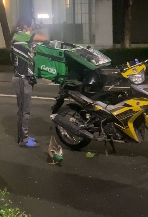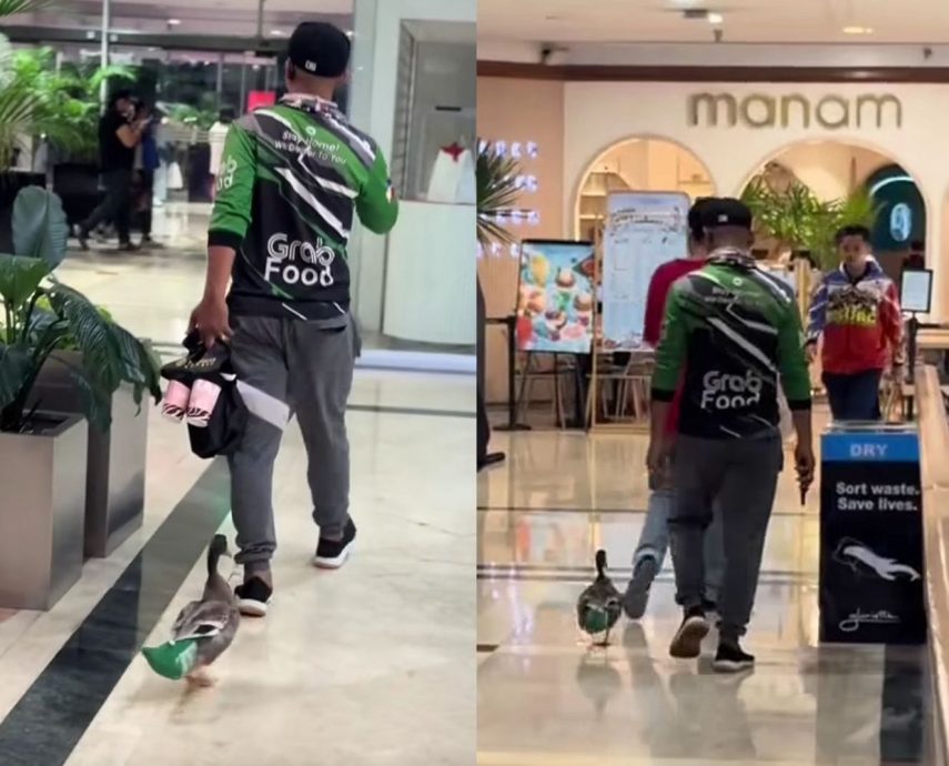 根据“Abang Just Sebarkan”上传到脸书专页的视频,显示菲律宾一名Grab送餐员将他的鸭子放在商场地上,让它四处走动。