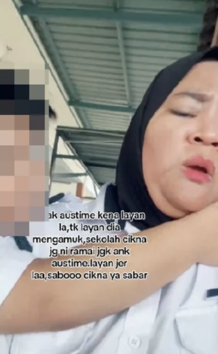 这名女保安娜娜在其TikTok账号“@CikNanaa”上传视频,可见正在校内执勤的她身穿制服,一名自闭孩童则靠在她身上大力抚摸她的脸蛋,嘴里不断称赞娜娜漂亮。