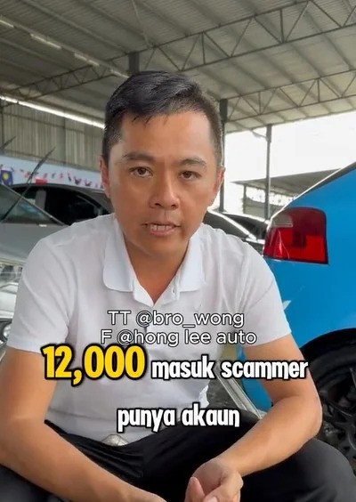 一名黄姓男子通过@bro_wong账号在tiktok平台揭露,其友人的二手车行近日遭到诈骗集团冒用名义进行诈骗,冒充其车行销售员身分,并向潜在的顾客下手,结果一名通过网上买车的女子坠入圈套,损失1万2000令吉。