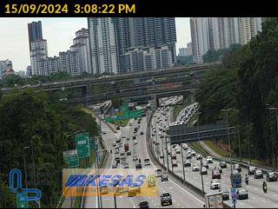 3.08PM:沙亚南大道(KESAS)的SUKOM交通枢纽出现车龙,交通缓慢。