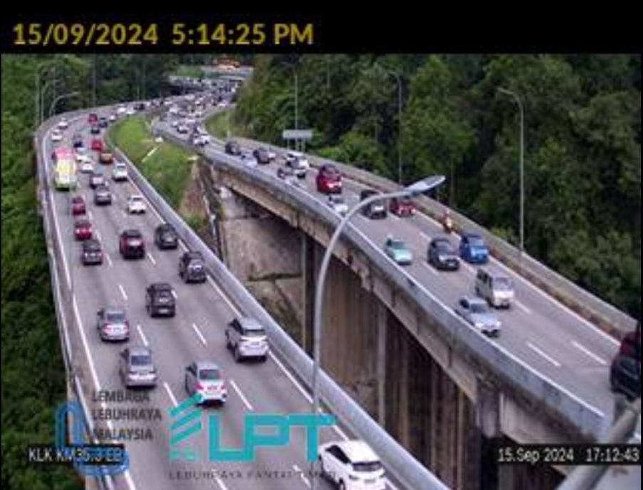 5.12PM:加叻大道从鹅唛收费站前往吉隆坡路段交通拥堵。