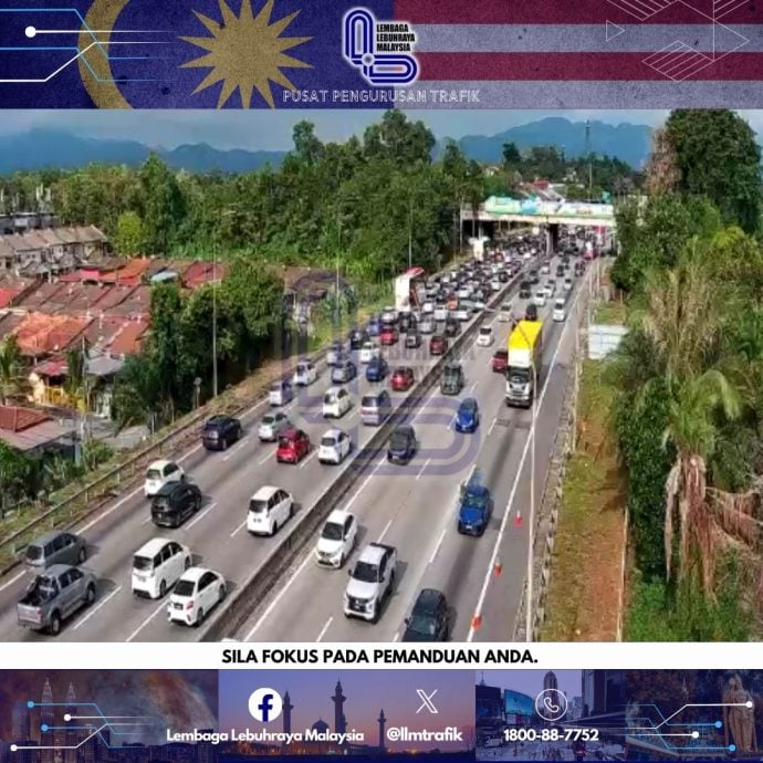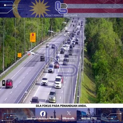 1.14PM:加叻大道往彭亨关丹路段现8公里车龙。