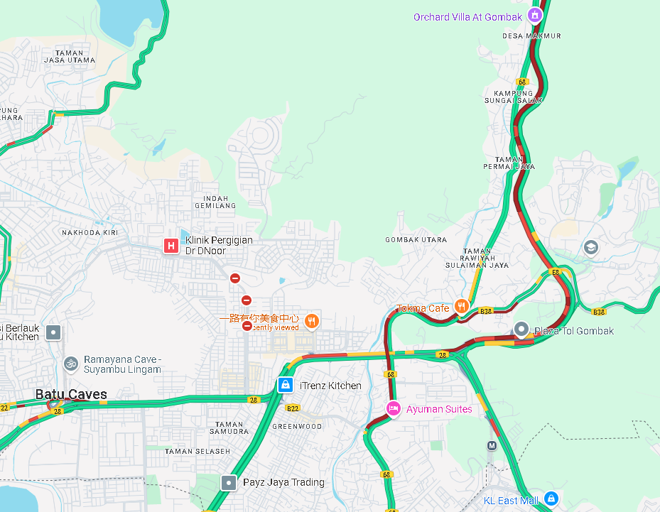 2:52PM:白蒲大道(LDP)往IOI购物中心方向出现车龙,交通放缓。