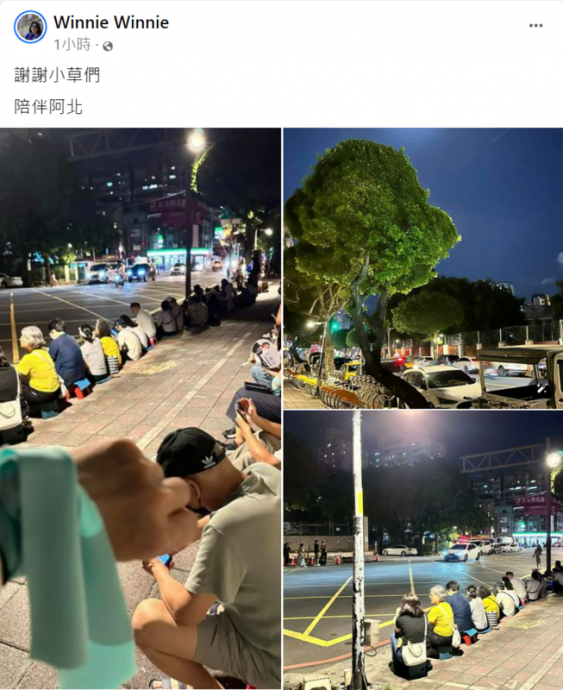 周二晚间约5时30分起陆续有小草自备凳子、扇子、小草发式等物品在北所对面静坐,截至晚间9时许约有80人聚集,民众党组织部副主任林昭印也到场,还有人举着白色的“柯P”旗帜。小草于晚间9时50分起陆续离开。