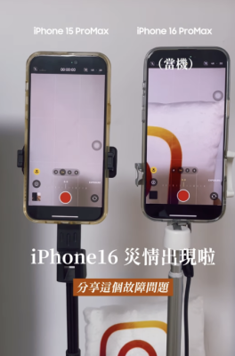 台湾电商人妻也拿出iPhone 15和16做实测,发现只要打开4K录影,有侦测到微距时,相机在还没开始录影的情况下,就直接宕机。