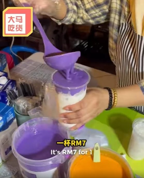 这名巫裔老板娘介绍说,她售卖的是一款网红饮料,当中成分相信是炼乳和色素制成,一杯售价为7令吉。