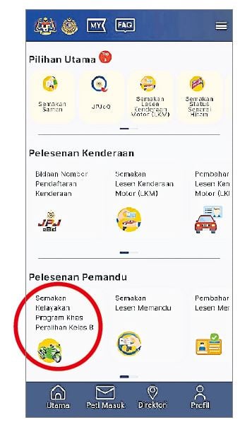 B1和B2级摩托驾照持有人可透过MyJPJ应用程式、mySIKAP网站(https://public.jpj.gov.my)及陆路交通局柜台检查是否符合资格。